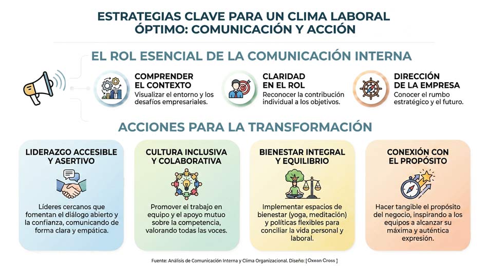 En Oxean Cross, como agencia de comunicación corporativa especializada en comunicación interna y externa, entendemos que el equilibrio organizacional depende de múltiples factores que deben abordarse con una mirada integral.